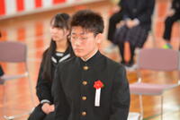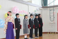 今年度は、小学校5名、中学校4名の卒業生が新たな進路への階段を進みました。校長先生からの証書授与に続いて、それぞれの代表児童生徒からの送る言葉・送辞、巣立ちの言葉・答辞を述べました。式典の結びには全校合唱「輝くために」を在校生・卒業生全員で合唱しました。