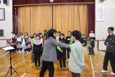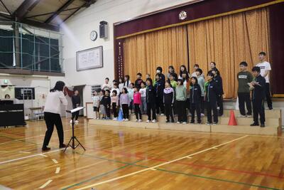10月17日(金)に25日(土)に行われる文化祭に向けての全校合唱練習を行いました。講師に稚内東中学校の平岡教頭先生をお招きして、発声についてのトレーニングを中心に練習をしました。練習後は練習前とは見違えるような声量で合唱することができていました。小学校1年生から中学校3年生までハーモニーを奏でるのは難しいですが、当日、保護者・地域の方々に素敵な歌声をお届けすることができればと、児童生徒は一生懸命練習を重ねています。講師に来てくださいました稚内東中学校の平岡教頭先生に深く感謝いたします。