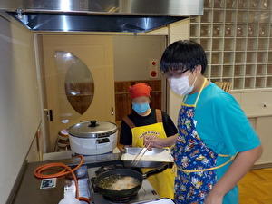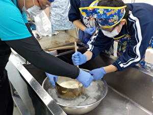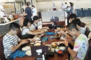 1年後に修学旅行を控えた中2学級。今年は中頓別町の「そうや自然学校」で宿泊学習です。午前中はパン作りやアイスクリーム作りを体験。午後はあいにくの雨でカヌー体験をトレッキングに変更し、鍾乳洞も見学してきました。夕食はみんなで仲良く調理実習。唐揚げ・青椒肉絲・ポテトサラダはなかなかの出来栄えだったようです。