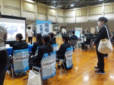 11月7日(金)中学校1年生がジョブフェアに参加しました。ジョブフェアは稚内市が主催する進路学習の取り組みで、稚内の企業の皆様が、中学生へ向けて各企業の仕事の魅力ややりがいについて説明などをしてくださる場です。中学校1年生はいろいろな企業の説明を聞きながら学ぶことで、自分の進路についての展望を持つことができていました。
