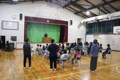 12月25日(木)、2学期の終業式を行いました。児童生徒は2学期の自分たちを振り返り、明日からの冬休みに向けて前向きな気持ちづくりをしていました。ぜひとも、この冬休みを、有意義、かつ、安心安全に過ごしてほしいと思います。また、2学期も保護者・地域の皆様に秋の資源回収や文化祭、カフェ天北などをはじめ、たくさんのご協力をいただきました。ありがとうございます。今後とも本校の教育活動にご理解とご協力をお願いします。