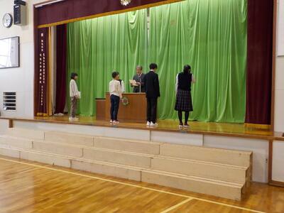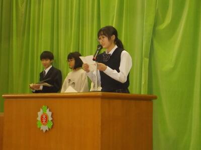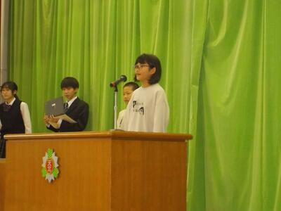 3月2日(月) 全校集会【児童生徒会認証式】 投稿: 教頭1 (14:51) 3月2日(月)に全校集会の中で来年度児童生徒会の認証式を行いました。4月から、児童生徒会は新体制でのスタートとなります。認証式では、来年度にどのような天北小中学校をつくっていきたいかを新役員が述べ、新学期に向けての気持ちづくりを行いました。 -